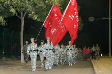 晚上,天气更是凉爽,同学们身着迷彩军装,背着背包,在教官们的带领下完成了长达4.5公里的拉练。一路上同学们喊着响亮的口号,应和着教官唱起军歌,成长的路上有汗水有泪水,但更多的是战胜自我后的喜悦与收获。