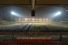 晚上,军训学员们终于迎来了期待已久的拉练。19点20分,全体2014级新生在操场集合完毕,共同观看了2013级本科生军训汇报演出视频,学长学姐们的精彩表现极大地鼓舞了新生们,让他们可以充满信心地出发。八点整,拉练的号角吹响,小军人们背好行囊,整装待发。“军歌嘹亮,步伐整齐,人民军队有铁的纪律……”,浩浩荡荡的队伍从田径场出发开始拉练。本次拉练采取男女分开进行,男生行走路程约6公里,女生行走路程约4.5公里。