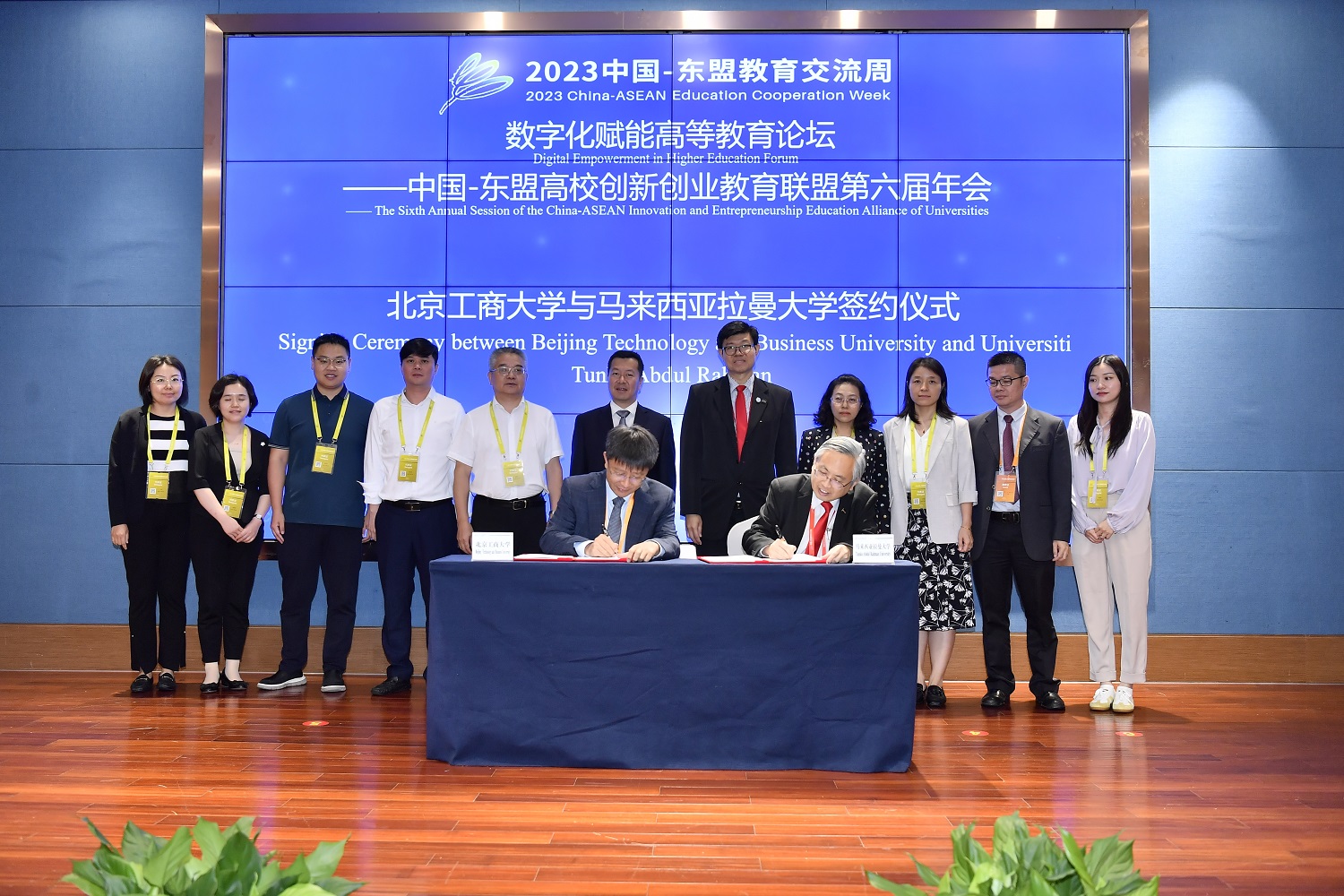 在闭幕式环节,我校与马来西亚拉曼大学共同签署协议备忘录,双方旨在建立互惠互利的合作伙伴关系,加强双方在学生交流、科学研究、师资队伍等方面的交流与合作。