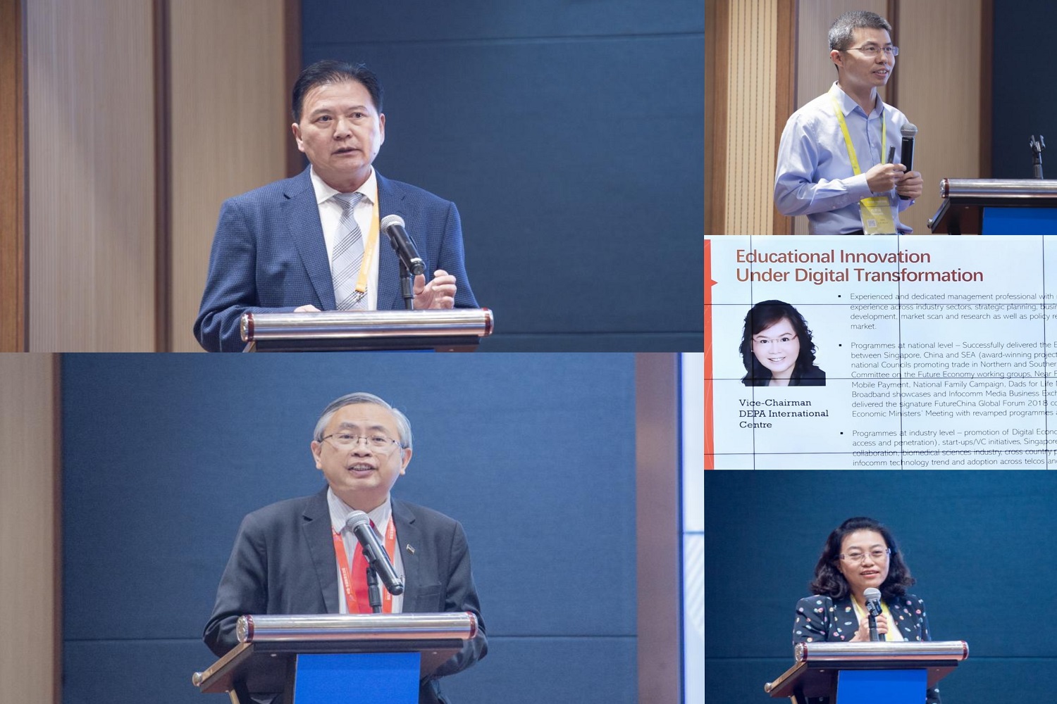 在主旨发言环节,来自北京市教育国际交流协会会长黄侃、马来西亚拉曼大学校长尤芳达(Ewe Hong Tat)、贵州理工学院校长潘良明、江西开放大学党委书记贺瑞虎、我校研究生院院长兼商学院院长毛新述、新加坡数字经济伙伴关系协定国际中心副主席董事陈雅丽(Alice Chan)、印度尼西亚万隆克里斯汀大学商学院教授索亚·萨特皖(Surya Setyawan)、我校国际经管学院数字经济研究院执行院长葛红玲教授等八位嘉宾,围绕数字化转型下的教育创新,就如何推进教育数字化转型、数字化发展对人才培育的新要求、数智时代的机遇与挑战、数字化教育取得的成功经验进行了交流和分享。