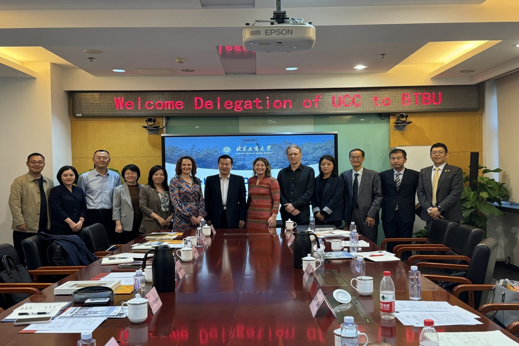 刘敏华对厄休拉·基尔凯利一行来访表示热烈欢迎。他介绍了学校的发展历程,以及近期在学院设置、学科建设、师资队伍、人才培养、综合改革等方面的情况。他表示,北京工商大学和爱尔兰科克大学有着近20年的深厚合作关系,交流交往十分密切,是好伙伴、老朋友。2022年,两校在已有合作的基础上,在博士和访问学者层次开展的联合培养取得突破,获批国家留学基金委创新型人才国际联合培养项目,这为进一步推动两校开展长期、稳定、可持续的交流合作打下了坚实的基础。希望双方未来能够在高层次人才培养交流、国际科研合作等方面不断深化拓展,取得更多的成果。