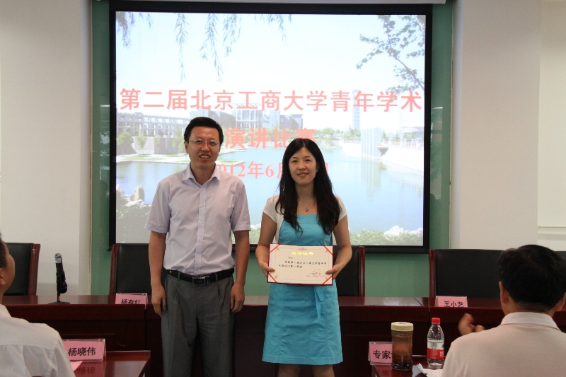 6月21日下午,第二届北京工商大学青年学术演讲比赛在阜成路校区举行,比赛由科学技术处处长杨有红、副处长钱立军联合主持。学校科协副主席谢志华副校长出席并致开幕词,学校科协委员、教师代表、研究生代表、本科生现场观摩了比赛。