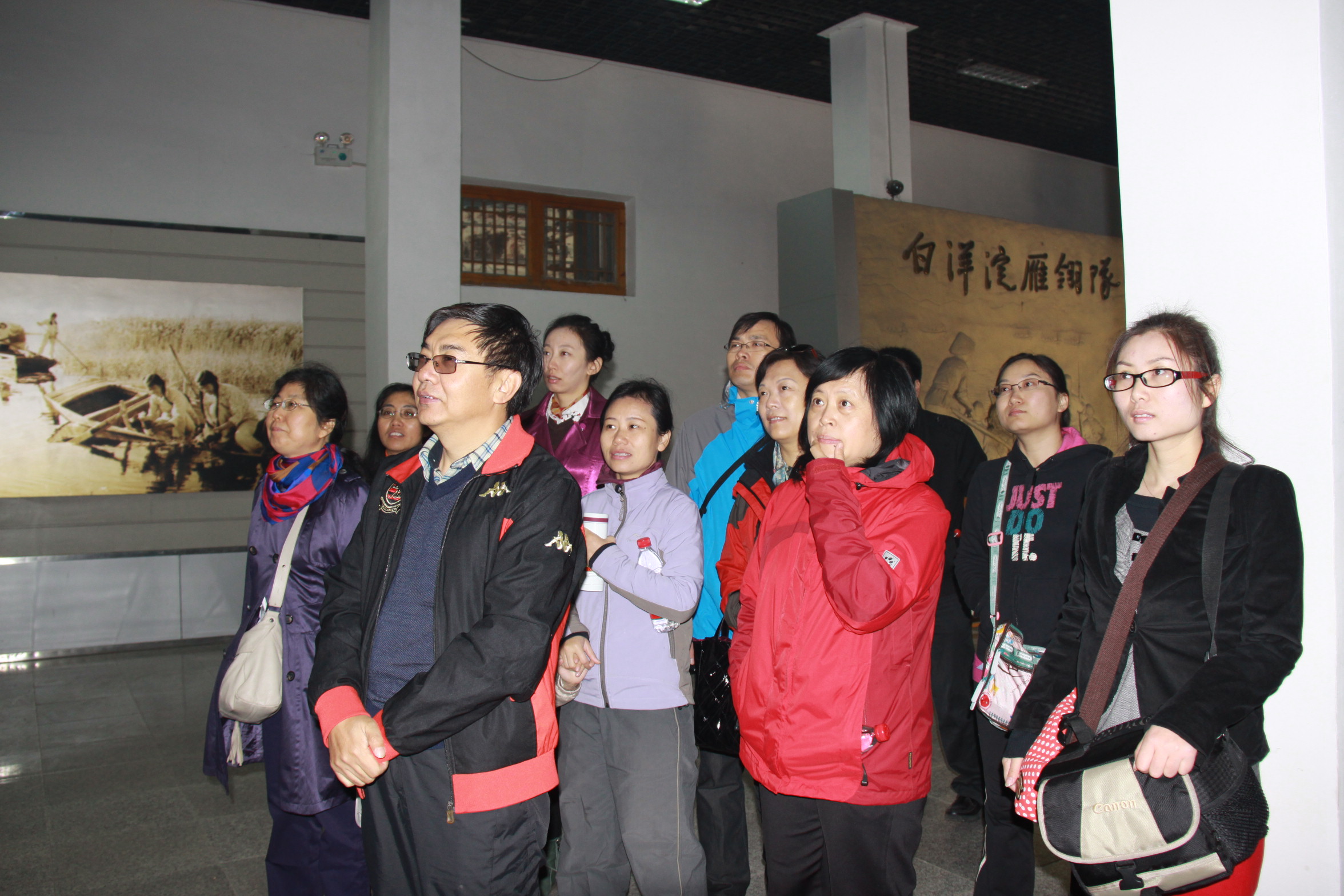 白洋淀是高校爱国主义教育基地,具有光荣的革命传统。全体教师到达白洋淀雁翎队纪念馆先合影留念,而后进入纪念馆参观,大家聆听了抗日武装“雁翎队”的事迹,了解到他们在中国共产党的领导下,利用淀区芦荡遍布,沟河交错的有利地形,开展机动灵活的游击战,以弱胜强,痛击日本侵略军;辛璞田、刘亦瑜、李之光、侯卓夫等一批革命先烈,他们为寻求救国救民之路,投身革命,坚持真理,宁死不屈。
