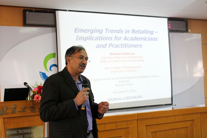 12月8日,“2012首都现代服务业发展论坛——零售业发展创新”在阜成路校区隆重召开。本次论坛由北京市社会科学界联合会与我校共同举办,首都流通业研究基地和北京批发研究基地协办。