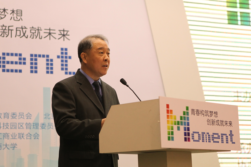 开幕式上,北京市科协夏强书记颁发了本次展示推介会的项创新金奖。北京市知识产权局付晓辉副局长现场接受包括我校学生白玉廷在内的4名大学生的专利申请。