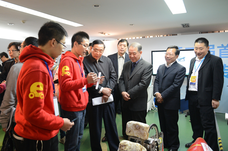 本届展示推介会汇集了来自所高校的项科技创新成果,涵盖了电子、机械、生物、医药、环保、新材料及新能源等领域。展会以各参会高校提供的大学生科技创新实物作品、专利发明为主,高校简介、论文、创意等内容为辅,运用展板、交互式多媒体、互动展品、实物模型等形式全方位地展示大学生科技创新作品与专利成果。北京市总工会家企业创新工作室、北京市发明协会和家企业展示了科技创新成果、创新方向。开幕仪式结束后,参会嘉宾观看了科技创作品与专利成果展览,并围绕产品成本、创新点、实用性等和同学们亲切交流。在我校展台,周立军副主席深入了解了我校“抠门狼”节能车队,并希望能够掌握核心技术,从使用对象等多方面进行考虑,使技术更加精尖,从而更加专业化。同学们纷纷表示赞同,并对专家的建议表示感谢。