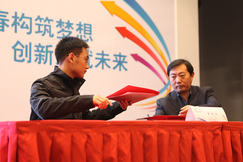 大学生的科技创新成果引发了各企业的浓厚兴趣。开幕式上,我校和北京燕京啤酒股份有限公司就“食品安全评价”课题现场签订了合作意向书。南昊(北京)科技有限公司就“一种人脸识别方法”课题与北京交通大学结对签约。