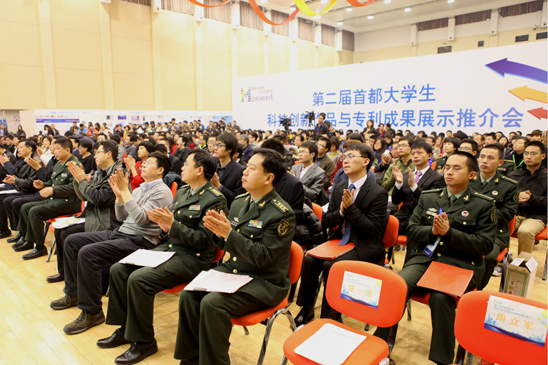 月日,第二届首都大学生科技创新作品与专利成果展示推介会在我校良乡校区文体馆隆重举行。本届推介会主题为“青春构筑梦想,创新成就未来”。北京市科学技术协会党组书记、常务副主席夏强,北京市知识产权局副局长付晓辉,我校党委书记孙尧东、副校长孙宝国应邀出席开幕式。开幕式由北京市科学技术协会副主席周立军主持。