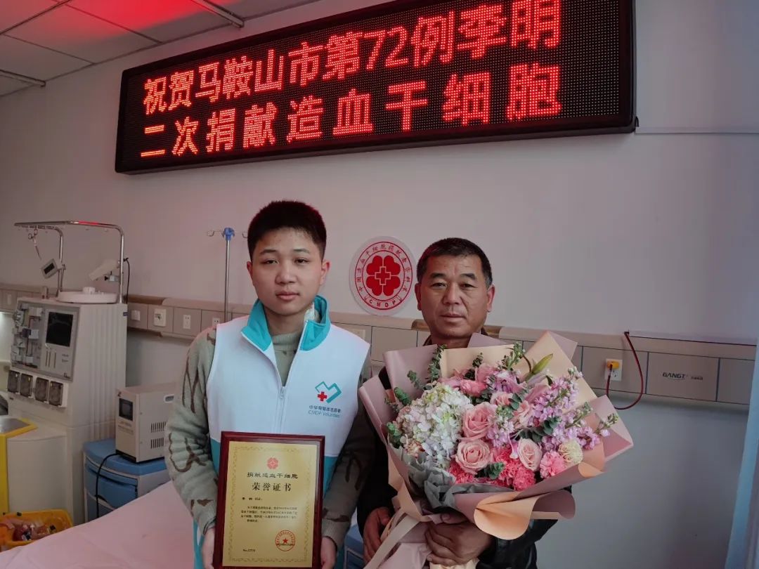 2019年的寒冬,19岁的李明独自走进了马鞍山市大华爱心献血屋,完成了人生第一次献血。恰逢该市红十字会工作人员在宣传造血干细胞捐献的知识,了解到造血干细胞移植对于治疗血液疾病的重要意义后,他毅然加入中华骨髓库,成为一名中华骨髓库志愿者。
