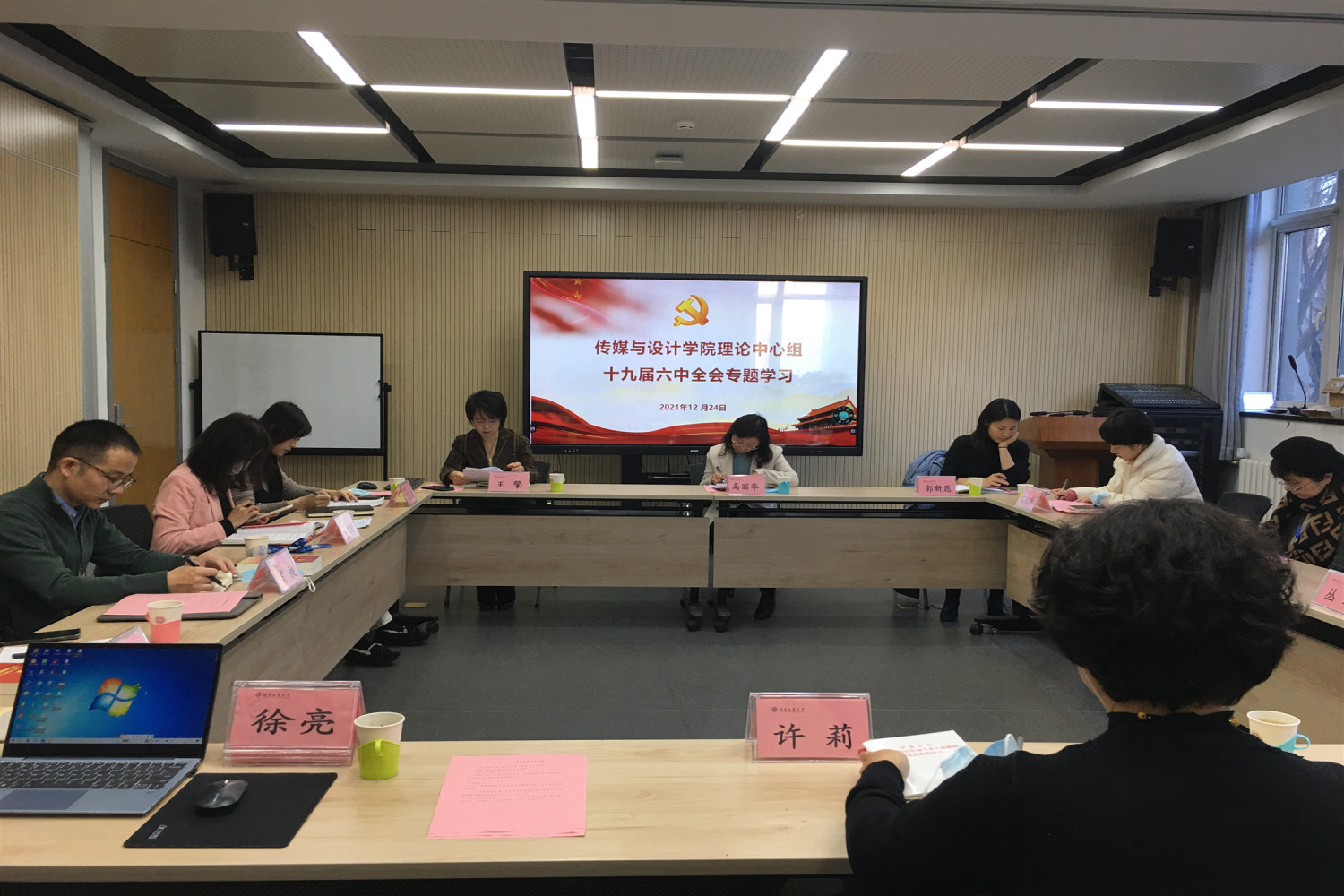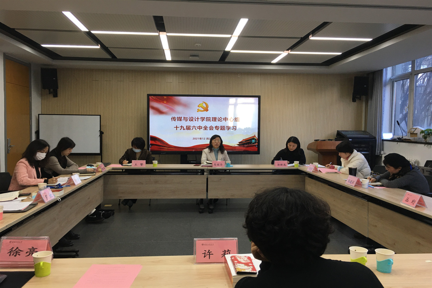 12月24日,传媒与设计学院党委理论学习中心组在良乡主校区召开了十九届六中全会精神专题学习会。学校党史学习教育第五巡回指导组成员郭新愿、纪彬彬到会指导。学院理论学习中心组成员参加集体学习,教师党支部书记列席会议。会议由科学研究院人文社科处处长(原传媒与设计学院党委书记)高丽华主持。