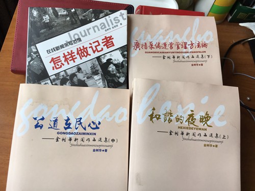 2015年6月,金树华与20多个同班同学一起返回母校——北京工商大学,拜访恩师,回顾历史,饮水思源,了解发展,展望未来,对母校情深意重,倍感亲切!借此机会,他把退休后出版的《怎样做记者》和金树华新闻作品选集《和谐的夜晚》《公道在民心》《广播采编运营管理方法论》4部总计200多万字的新闻专著,计20本沉甸甸的书籍捐赠给母校图书馆和文学院新闻系。2016年,他又把收集到的退休前主编出版的8部16本新闻专业书籍捐赠给母校图书馆。