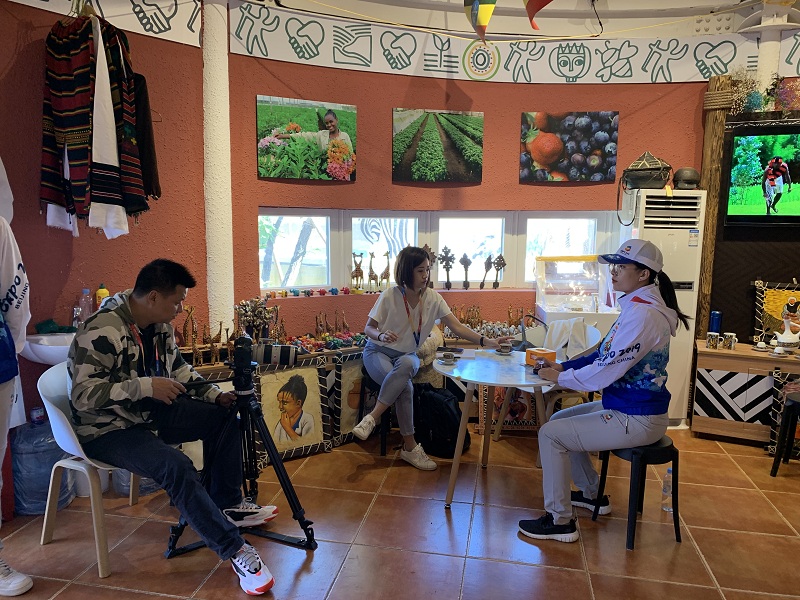 来自中国国际电视台(CGTN)的记者对服务于世界园艺展示区的我校经济学院金融专业马灵清同学进行了采访,深入了解我校志愿者在世园会的服务工作情况。马灵清在采访的全程用熟练的英语回答着记者的问题,向记者详细介绍了志愿者们的工作情况,并表示在这举国欢庆的国庆假期中,接待来自全国各地甚至世界各国的游客,以温暖的微笑和优质的服务为世园会的举办献上自己的一份力量是十分有成就感的一件事。