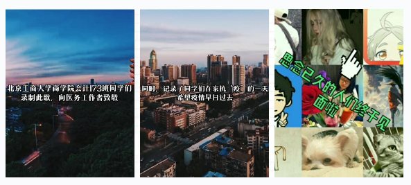 “我班战疫心故事”征集活动一经推出,便有近70组同学自愿报名参加。有些班委将疫情期间班级集体活动的精彩瞬间集锦成作品,像是一份送给全班的礼物,珍存着属于他们的共同回忆;还有不少同学挂念着在一线与疫情奋战的逆行英雄,通过作品传达最真挚的爱与感恩,强信心、暖人心;更多的同学用镜头记录下了自己在疫情期间一天的生活安排,网课、作业、下厨、健身等,颇能引起大家共鸣,“虽然疫情让我们在空间上相互隔离,但我们在时间上同步、在心理上同在。”