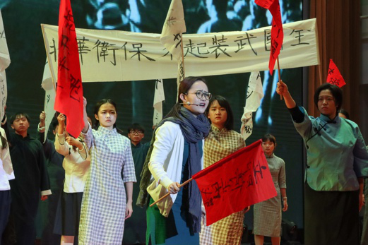 “一二·九”运动主要发起人之一姚依林同志曾担任北工商的前身中央商业干部学校校长。红色基因深深植根于北工商的建设发展中,流淌在北工商学子心中。大会上,学生自编自演的情景剧以运动发起人蒋南翔、陆璀、姚依林的演讲为主线,通过几个重大历史节点串联剧情,还原了运动发生的背景和经过。台上演员们全情投入、声情并茂,用极富感染力的表演,生动展现了“一二·九”运动中民族脊梁的爱国精神和责任担当,带领全场师生回到了那段热血澎湃的历史中。