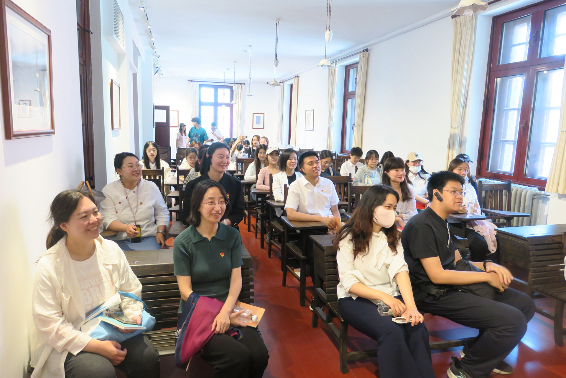 在北大红楼,中国共产党早期北京革命活动纪念馆馆长杨家毅作为研学导师,为师生们亲自讲解,分享青年毛泽东在北大红楼、北大二院、杨昌济故居、三眼井胡同、陶然亭慈悲庵、长辛店等红色旧址开展革命活动的经历。师生一行坐在毛泽东、邓中夏等先驱者们曾经学习研讨的座位上,仿佛穿越时空,开启了一场穿越时空的对话。