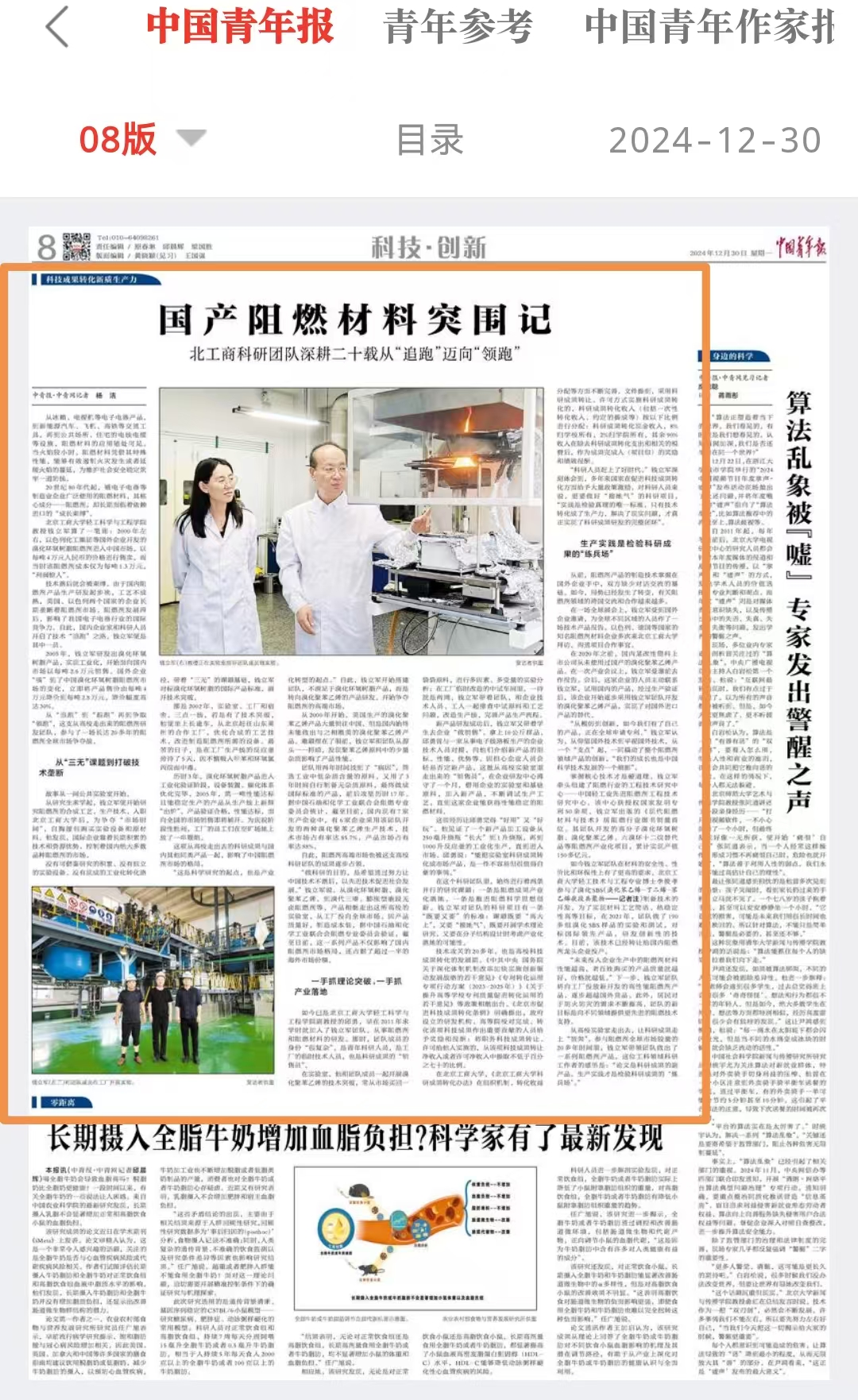 近日,中国青年报科技·创新版面对我校科研团队进行报道: