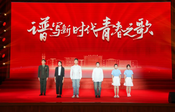 情景剧《青春有我》伴着昂扬的音乐上演。学校十佳学霸宿舍、红色“1+1”获奖学生党支部、先进班集体代表悉数登场,讲述了优秀基层组织互帮互助、砥砺前行、爱国奋进的故事。