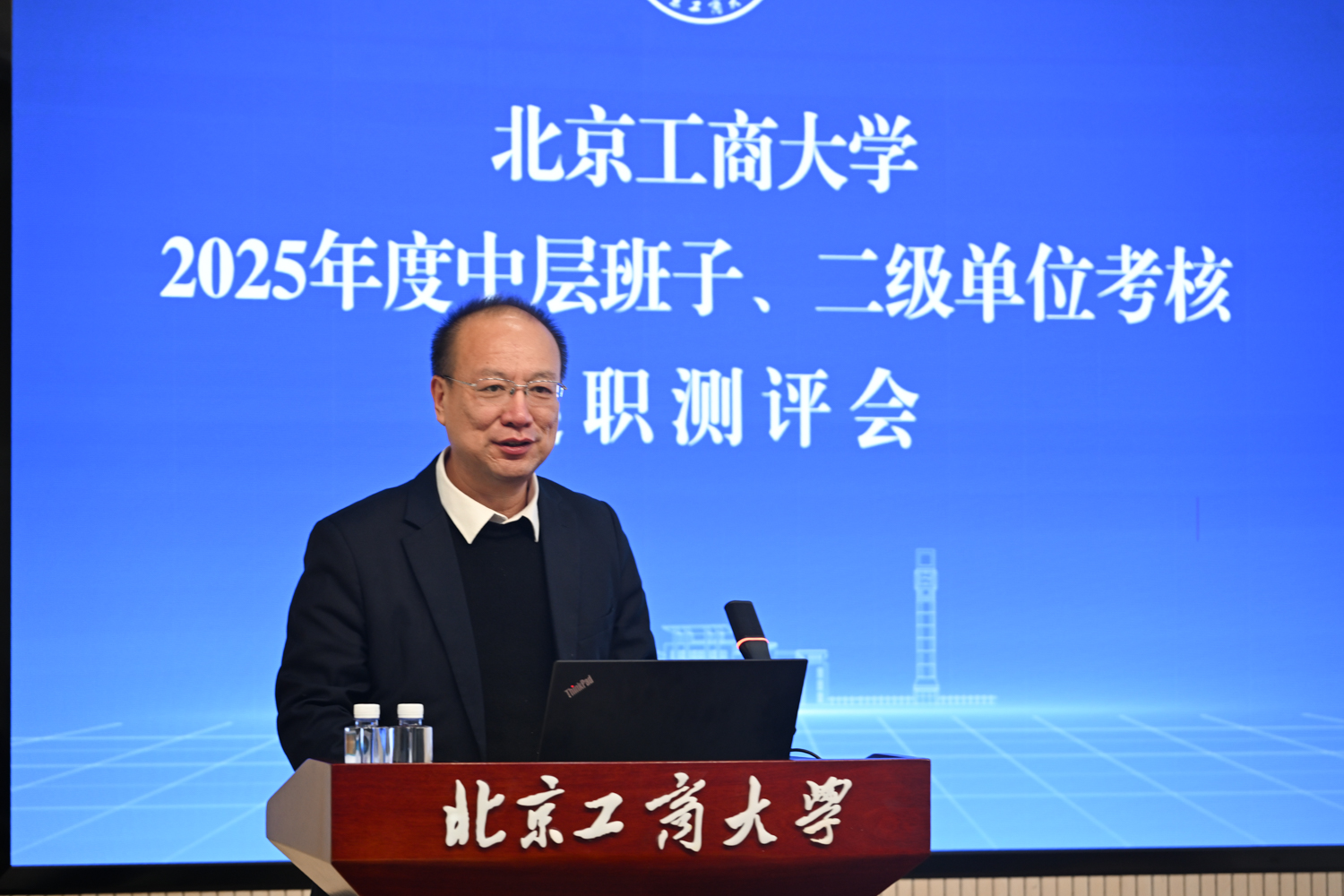 沈千帆作总结讲话。他充分肯定了2025年全校上下以“工商一体化”发展理念为引领,在加快推进“双一流”学科创建和高水平研究型大学建设方面取得的各项成绩,同时就2026年工作提出三点要求:一是要提高政治站位,筑牢思想根基;二是要扎实推动工作,强化担当实干;三是要严守纪律底线,永葆清廉本色。他号召,全体领导干部要以此次述职为新起点,履职尽责、锐意进取,切实把“十五五”规划“蓝图”转化为学校建设发展的“施工图”和“实景图”,共同谱写北京工商大学发展新篇章!
