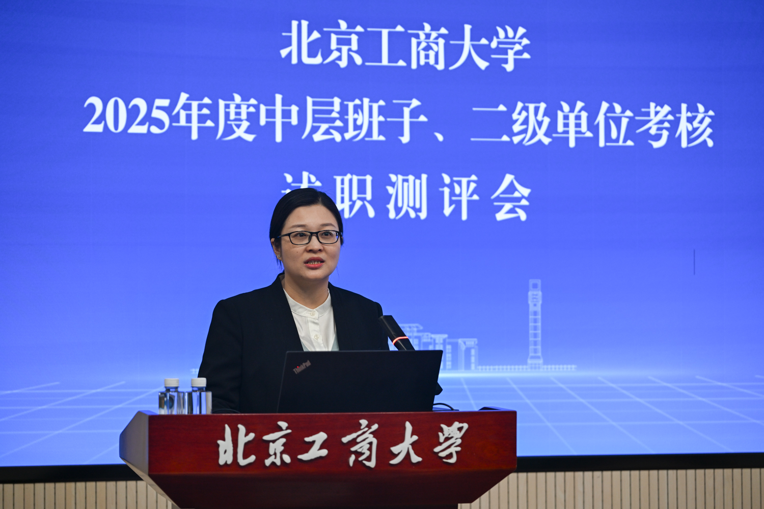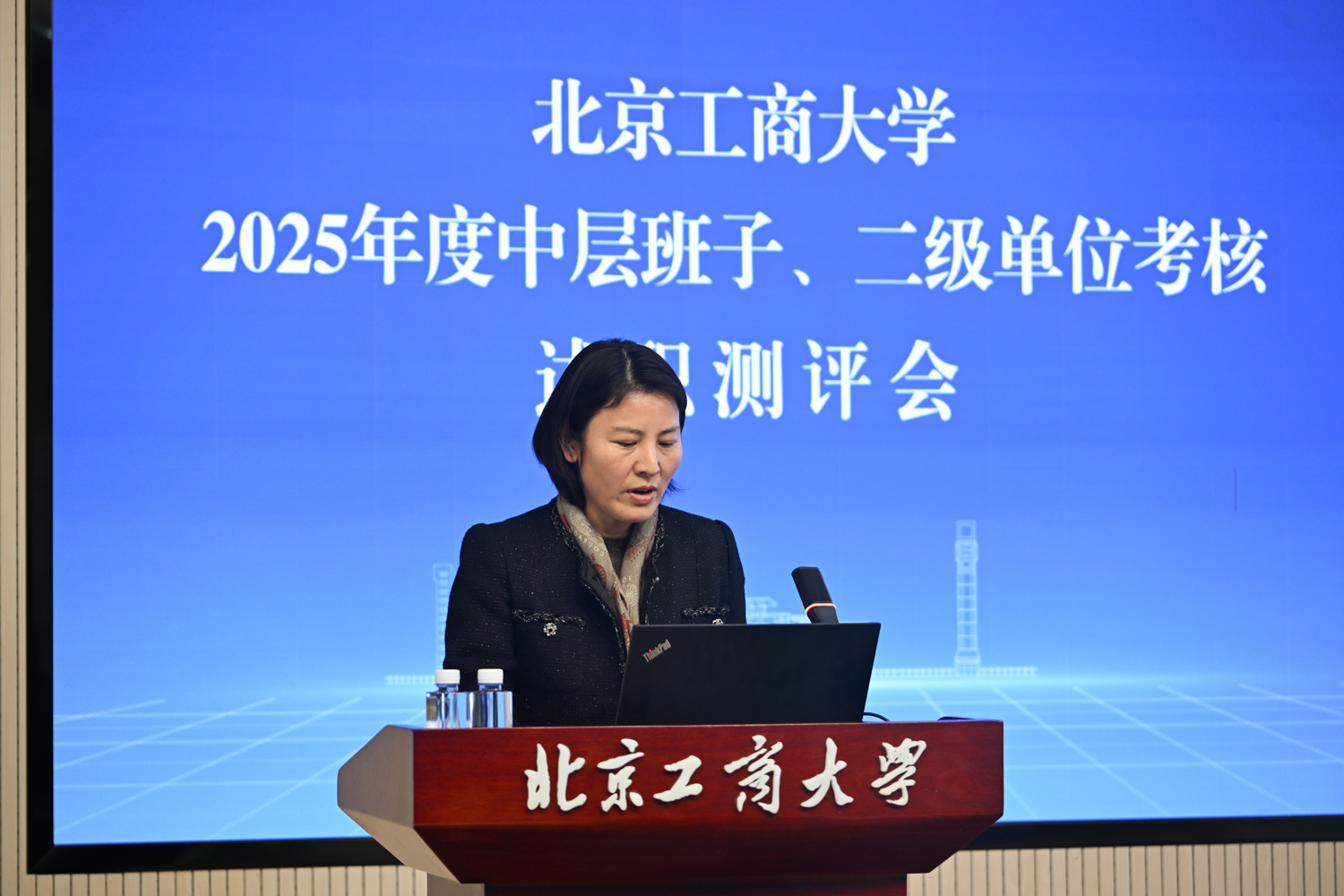 根据有关工作安排,各二级单位负责人依次进行年度工作述职。各单位紧扣自身职责定位,从亮点提炼、规律总结、问题分析、举措谋划等方面进行汇报,既全面呈现了年度工作成效,也深刻检视了存在的不足与差距,同时明确了未来工作的发展方向与具体规划。与会人员分别针对2025年中层领导班子年度考核和非教学单位分类卓越考核评价开展了现场测评。