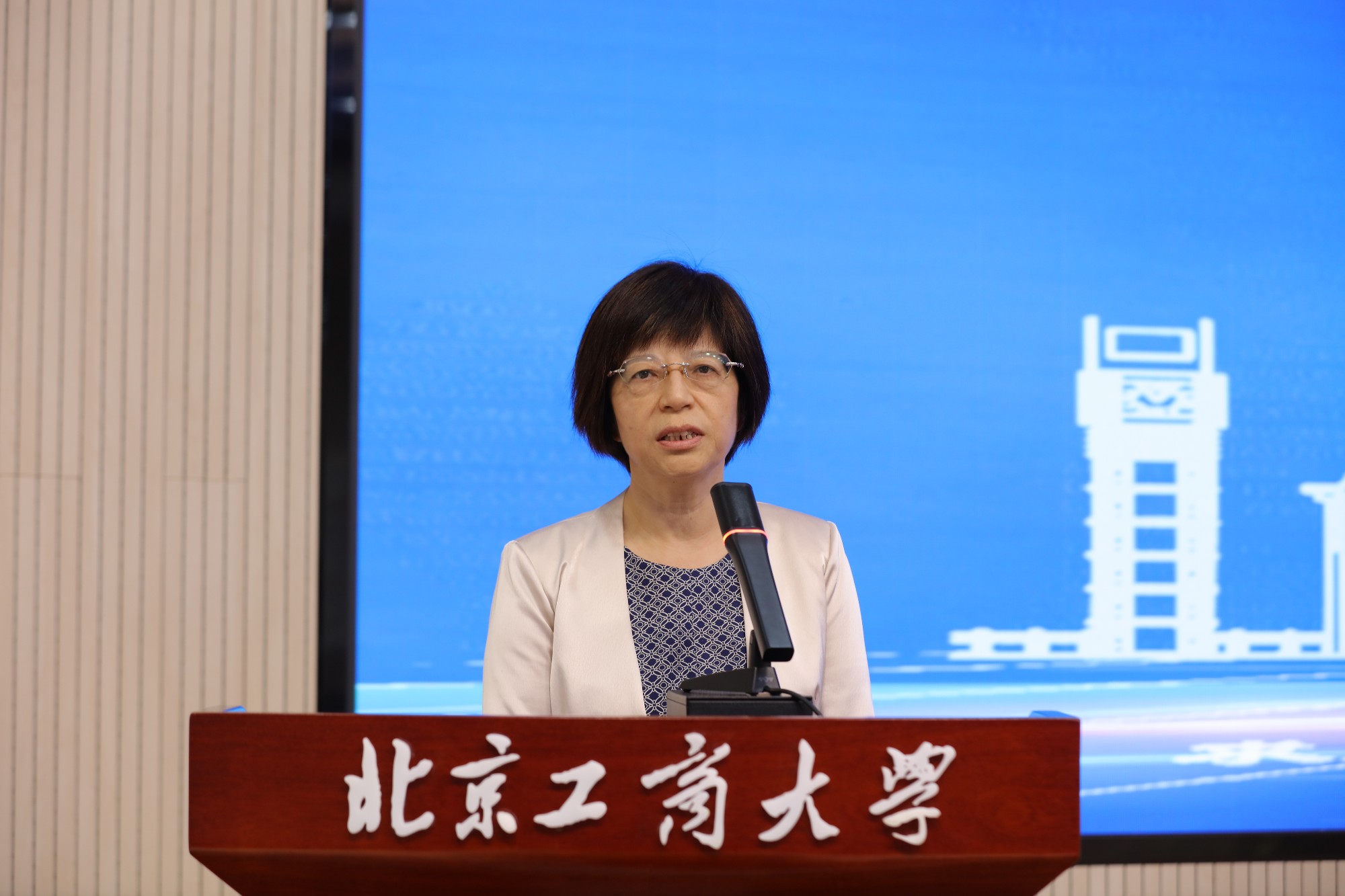 张晓玲致辞。她表示,市教委始终把提升青少年科学素养摆在突出位置,将其作为教育科技人才一体化发展的重要结合点,实施“科学教育六大行动”,推动形成各部门齐抓共管、校内校外协同推进的科学教育新生态。北京工商大学与房山区的此次合作,正是对这一生态的生动诠释。她提出四点希望:一是在协同机制上走深走实。要聚焦房山区中小学科学教育的“真需求”,打造“校地共生、育人共赢”的样板。二是在内涵建设上聚焦发力。坚持“重在实践、重在融合、重在贯通”,培养学生的批判思维、探究能力和创新意识。三是要在“多方合力”上凝聚共识。科学教育要激活“社会多方”,形成“高校+区域+学会+企业”的多元育人合力。四是在成效评估上强化导向。建立科学教育实施效果的跟踪评估机制,形成可复制、可推广的区域经验。她强调,科学教育是筑基工程、未来工程。要以此次合作为新起点,持续深化校地协同、资源共享、模式创新,共同打造科学教育的“北京样板”,为培养担当民族复兴大任的时代新人作出更大贡献。