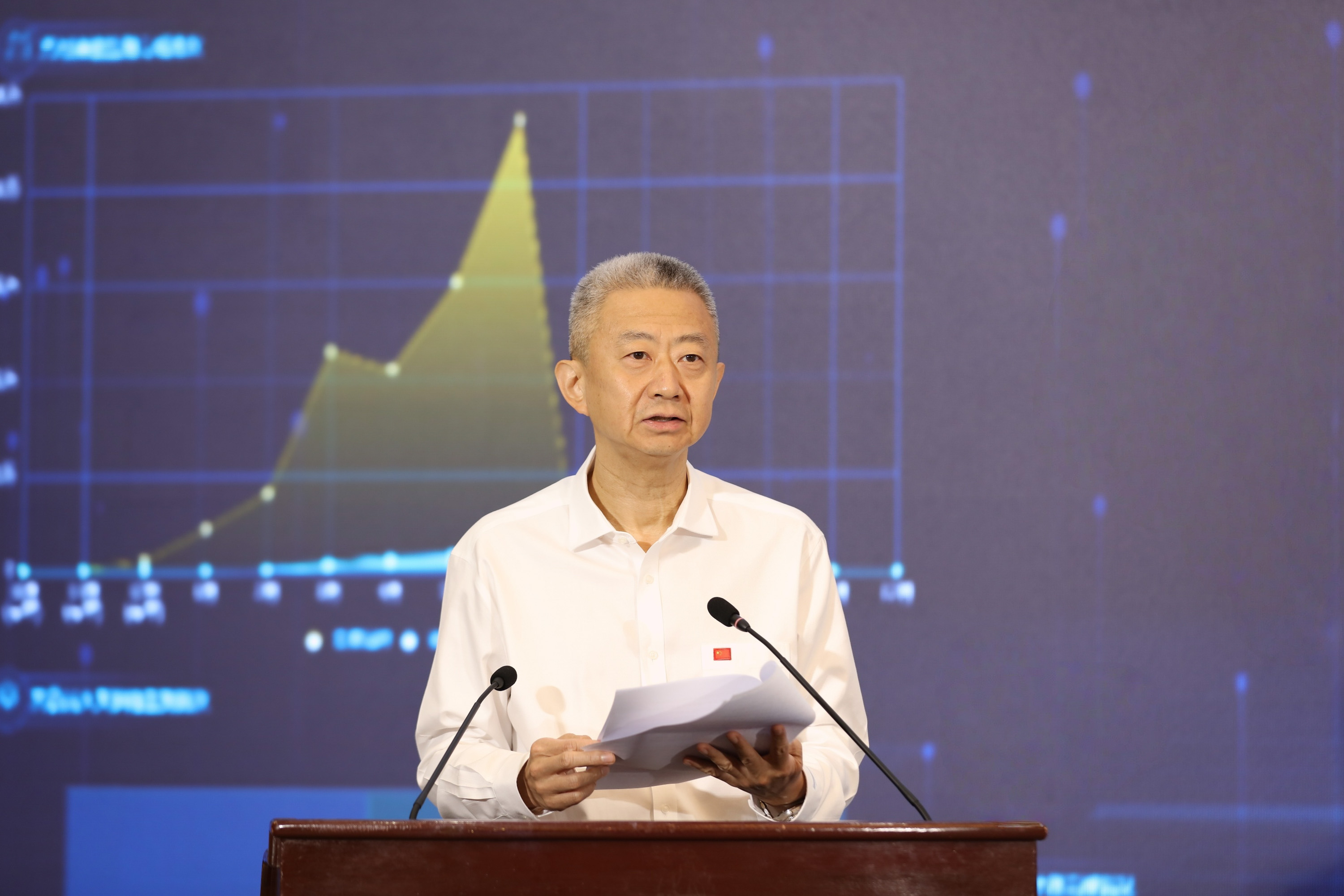 首都经济贸易大学党委副书记、校长吴卫星作题为《锚定经贸新场景构建AI教育新生态》的主旨演讲。