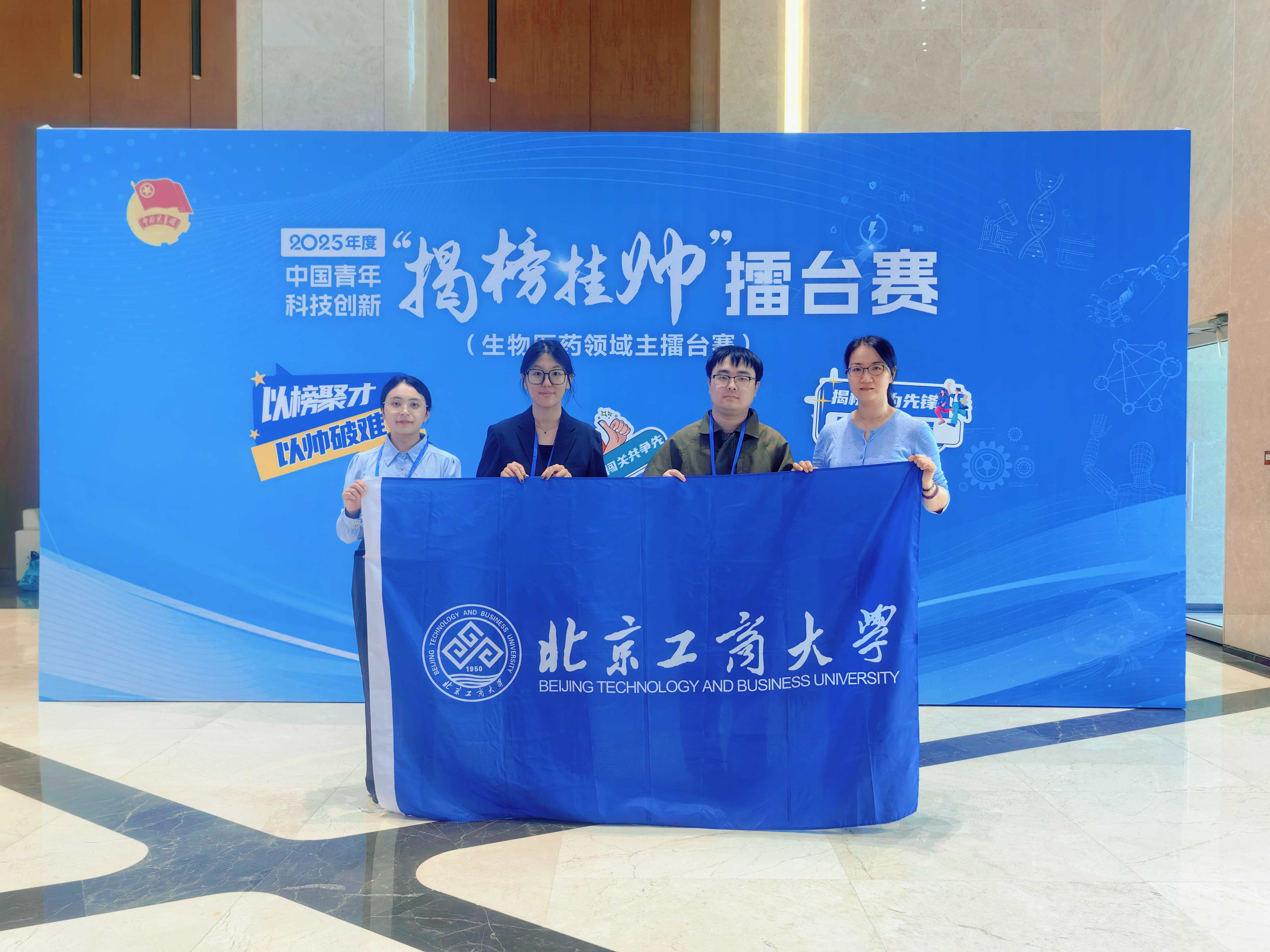 以青春“揭榜”,用创新“挂帅”。9月26日至29日,第十九届“挑战杯”全国大学生课外学术科技作品竞赛(以下简称“挑战杯”竞赛)2025年度中国青年科技创新“揭榜挂帅”擂台赛“种业科技创新领域”“生物医药领域”终审决赛在海南三亚、内蒙古呼和浩特圆满落幕。北京工商大学斩获全国特等奖3项,其中擂主1项(特等奖得分第一名),并获一等奖1项,实现历史性突破,刷新学校在“挑战杯”赛事中的最佳战绩!