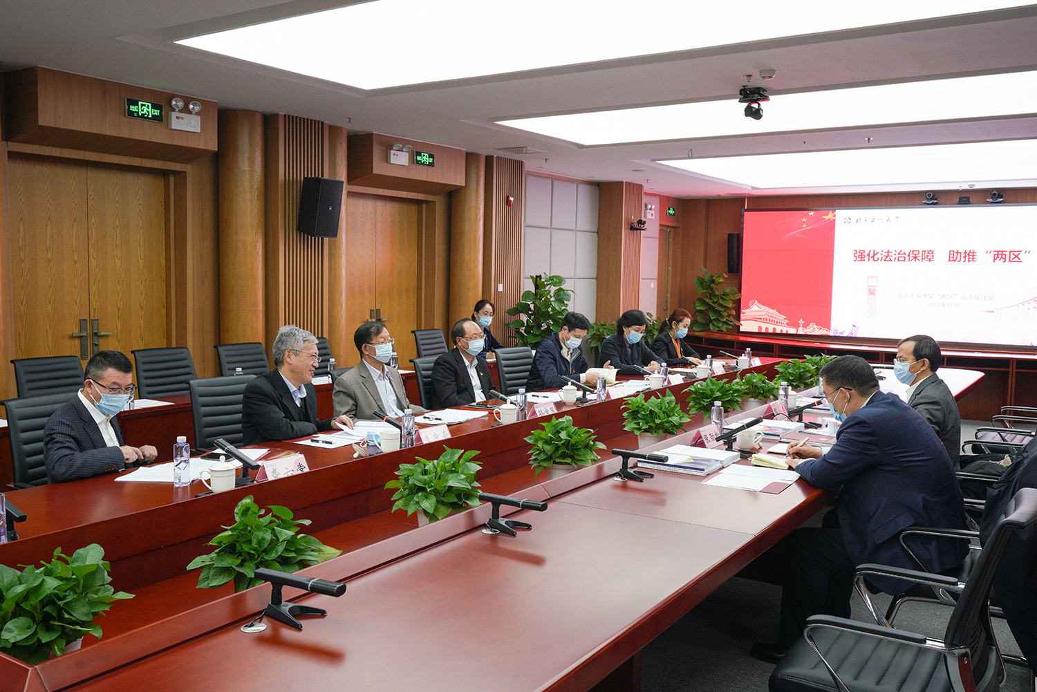 会上,殷勇副市长与我校“两区”体制机制改革研究团队座谈交流“两区”体制机制改革有关工作。学校“两区”体制机制改革研究团队负责人、法学院李晗副教授汇报研究工作情况,她围绕推进法定机构试点、设立新型研究机构、完善激励机制和容错机制、完善评估考核和监督机制等方面,针对“两区”管理体制机制创新中的难点和痛点问题进行阐述;并代表学校作《以首善标准推动“两区”“三平台”建设 打造服务北京“高校样板”》专题汇报,展示了我校服务“两区”建设等方面的多项示范性成果。