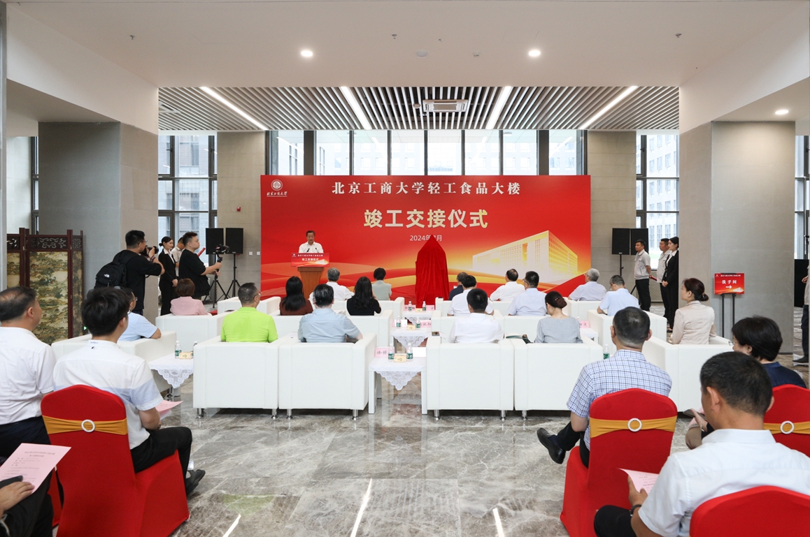 7月2日上午,学校举行轻工食品大楼竣工交接仪式。市委教育工委委员、市教委副主任王方,市教委财务处处长张宪国、民办教育处处长马驰知、基建处副处长王虹;房山区区委常委、副区长靳璐,良乡大学城管委会副主任徐振安;北京建工集团有限责任公司副总经理陈连义,北京建工三建公司党委副书记、总经理李涛;北京工商大学党委书记黄先开,党委副书记李中奇、宋晓欣,党委常委、纪委书记、二级高级监察官杨红,党委常委、副校长毛新述,以及学校党政办公室、发展规划处、国有资产管理处、校园建设处、公共事务处、保卫处、网络与信息化管理中心、图书馆、大型仪器设备共享中心、食品与健康学院、轻工科学与工程学院负责人参加仪式,仪式由党委常委、副校长郑文红主持。
