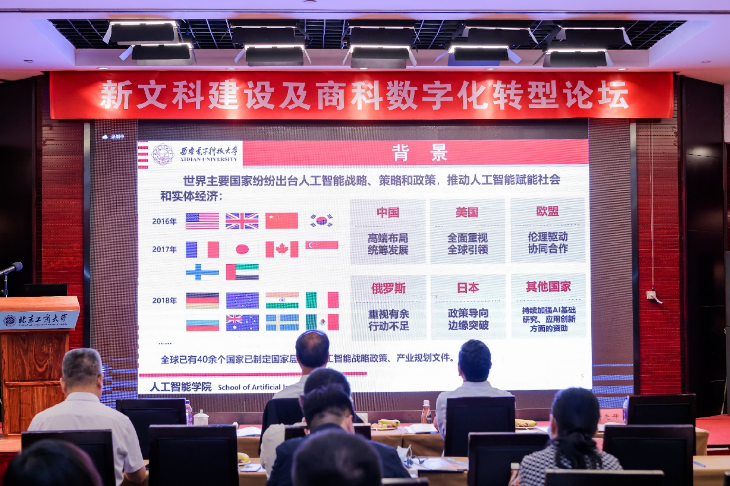 教育部高教司副司长武世兴、北京市教委教育信息化处处长张宪国、北京外国语大学校长杨丹教授、广东财经大学校长于海峰教授、中央财经大学副校长李建军教授、西安电子科技大学计算机科学与技术学部主任焦李成教授、北京师范大学统计学院院长宋旭光教授、北京理工大学网络安全学院副院长嵩天教授、合肥工业大学校长助理刘心报教授、北京邮电大学杜军平教授等学者,以及北京网梯科技发展有限公司张震总裁、用友新道科技贾大明副总裁、中国联通重庆公司科技创新部李明欣总经理等业界代表围绕商科数字化转型深入探讨交流。论坛报告环节由校党委常委、副校长左敏、徐丹丹等主持。