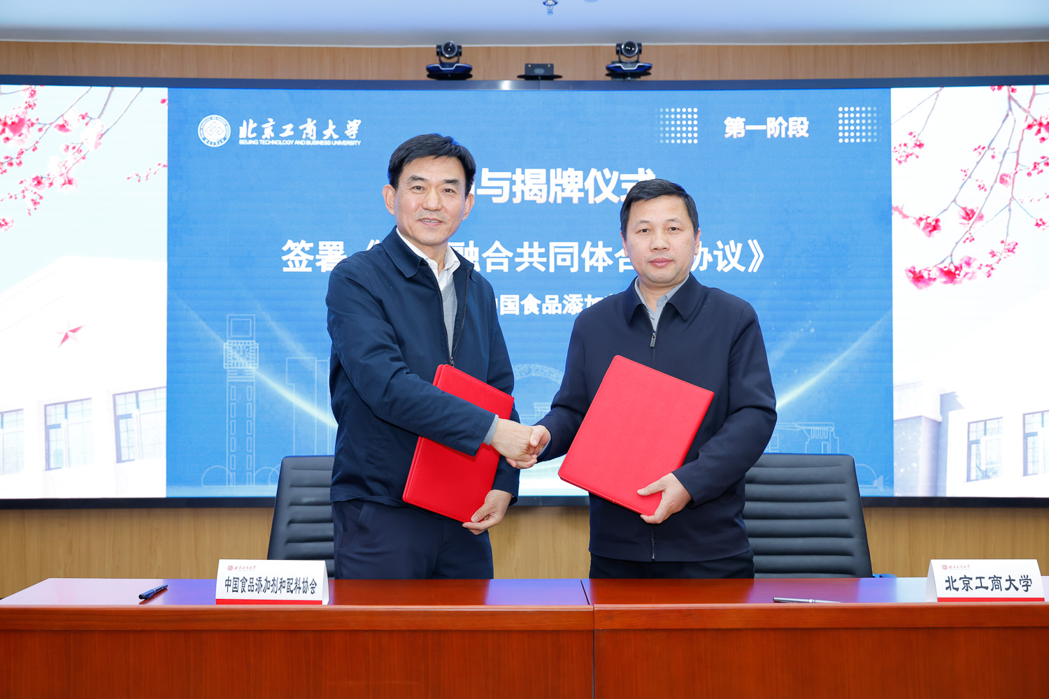 会上,北京工商大学与中国食品添加剂和配料协会正式签署产教融合共同体合作协议,我校党委常委、副校长寇红江与中国食品添加剂和配料协会理事长杜雅正共同为联合人才培养基地揭牌。