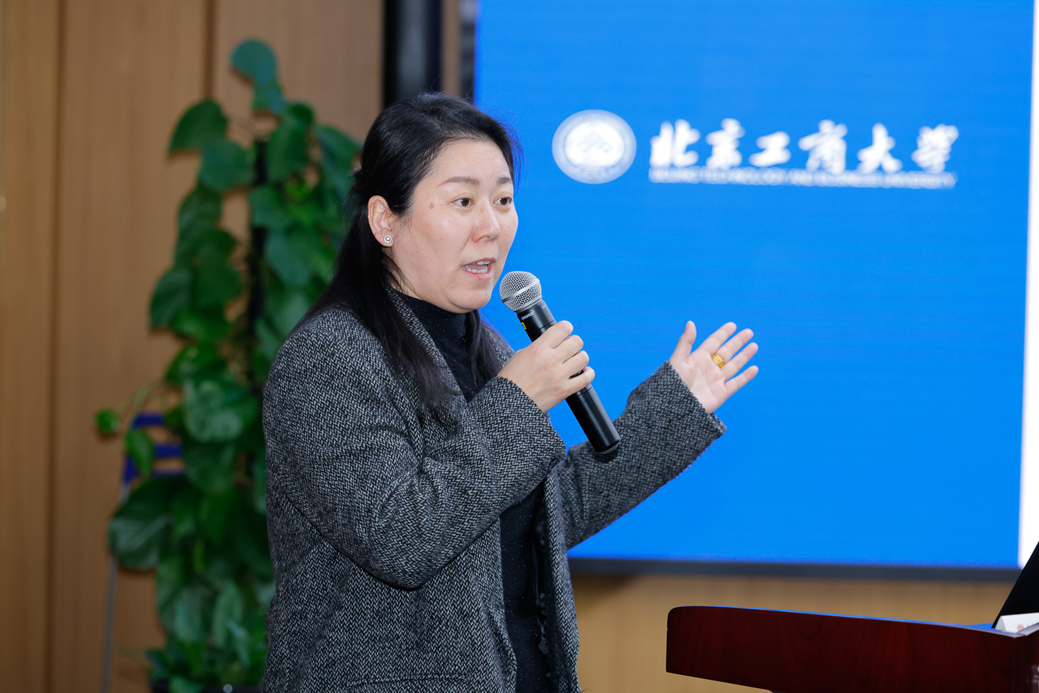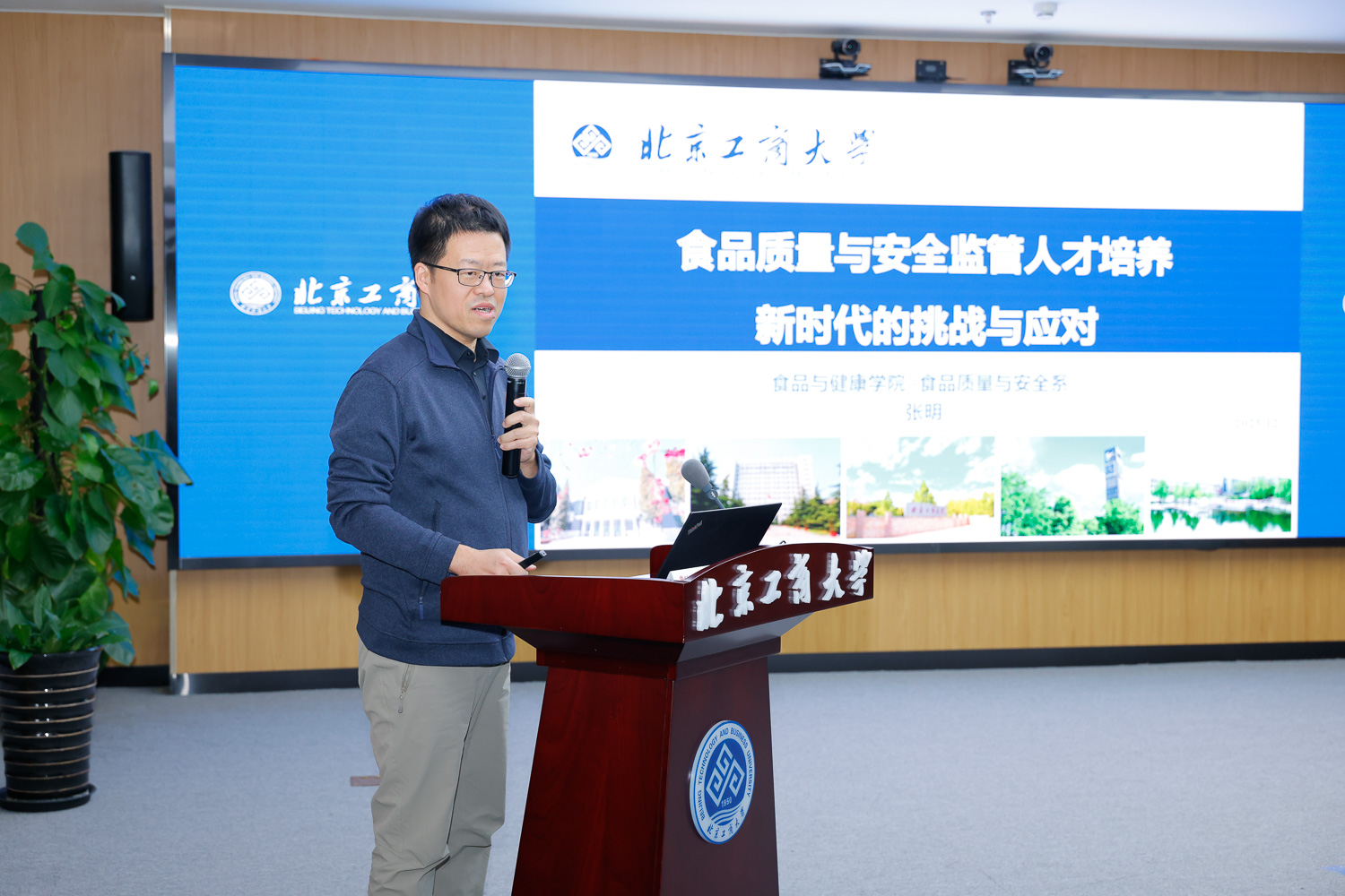 国家食品安全风险评估中心标准三室主任张俭波在致辞中表示,食品安全标准是落实“四个最严”要求的根本前提与重要基础。近年来,在国家卫健委的领导下,中心着力强化多部门、多领域协同的标准制修订工作机制,推动我国食品安全标准体系持续完善。我国作为国际食品添加剂法典委员会主持国,正深度参与并积极推动相关国际标准制定工作。随着食品新技术、新工艺、新业态的涌现,应对新型食品安全风险,迫切需要既懂法规又通技术的“法工融合”型复合人才。他谈到,北京工商大学作为国家卫健委食品安全与营养健康“1+2+8”战略合作机制成员单位、国家食品安全风险评估中心技术合作中心,去年还成功入选国家卫健委食品安全风险评估与标准研制特色实验室,在食品安全标准研究等方面做出显著贡献。他希望以此次研讨会为契机,进一步深化双方在人才培养领域的合作,推动更多具备跨学科背景的复合型人才参与国家食品安全政策、法规与标准的转化与落实工作。