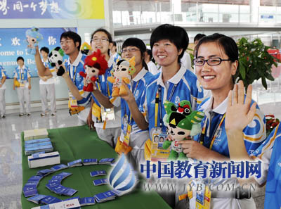 北京奥运会、残奥会开幕在即,10万赛会志愿者、40万城市志愿者和100万社会志愿者以及20万拉拉队志愿者已经展开双臂笑迎来自五洲四海的宾朋。作为奥运服务的生力军,大学生志愿者的出色表现,向世界亮出最美丽的青春名片。