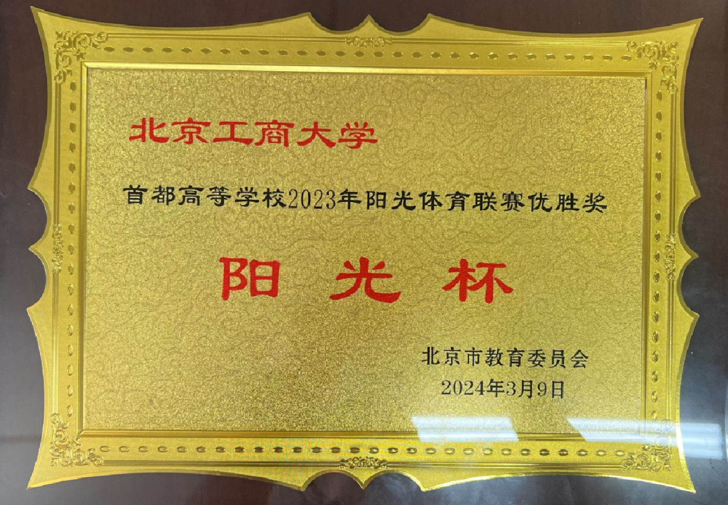 3月9日、10日,北京市大学生体育协会六届五次理事(扩大)会议隆重召开。教育部、中国大学生体育协会、北京市教育委员会以及北京市大学生体育协会、首都高校各体育部领导等两百余人出席会议。大会对取得首都高等学校2023年阳光体育联赛优胜学校进行了表彰并颁奖。我校体育代表队在女子篮球、田径、乒乓球、游泳等项目中取得优异成绩,荣获“阳光杯”体育工作优胜奖。