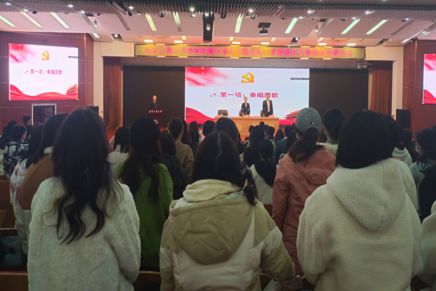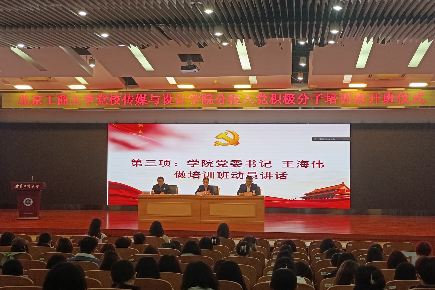 11月5日,传媒与设计学院分党校第十六期入党积极分子培训班开班仪式在良乡主校区举行。学院党委书记、分党校校长王海伟,党委副书记、分党校副校长杨帅参加开班仪式。党校学生兼职辅导员、培训班学员共计200余人参加开班仪式,会议由学院专职组织员徐亮主持。