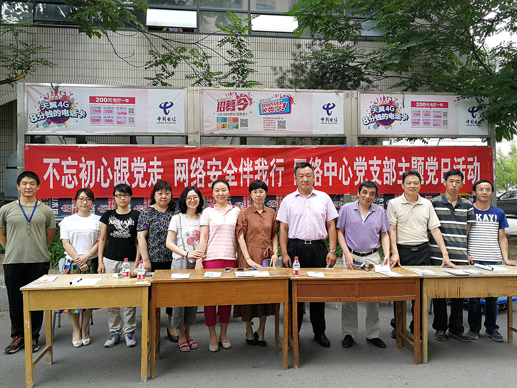 为庆祝建党96周年,为促“两学一做”学习教育活动常态化、制度化,在庆祝建党96周年之际,网络中心党支部于6月21日和6月26日分别在阜成路和良乡校区开展了以“不忘初心跟党走,网络安全伴我行”为主题的党日活动。
