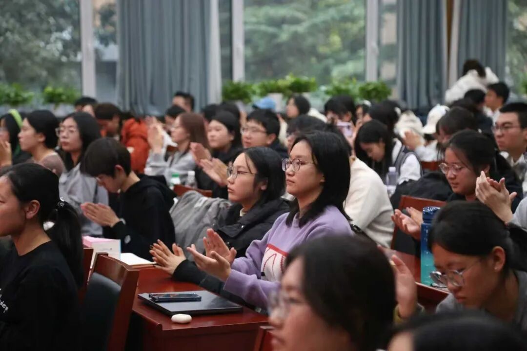 北京市优秀退役军人、中广联全民国防教育宣传委副会长,北京司雷植保科技有限公司董事长、创始人,福建农林大学特聘教授万佳以“传承伟大抗战精神,毋忘生死存亡之道”为题展开讲述。他以“扎根田野谋创新”的实际行动,展现出“退役不褪色”的军人本色。他积极推动数字化装备与无人化运营在农业领域的广泛应用,用科技力量守护国家粮食安全,获得多项国家级、市级创新创业奖项,这份“脱下军装仍冲锋”的坚守,也让在场师生对“奋斗”一词有了更为深刻的体悟。计算机与人工智能学院代慧敏听后感慨道:“万佳老师的分享让我深切感受到跨界创新的力量与坚持的价值。他以科技护航农业生态,真正实现了个人理想与社会责任的融合,这份担当令人动容。”