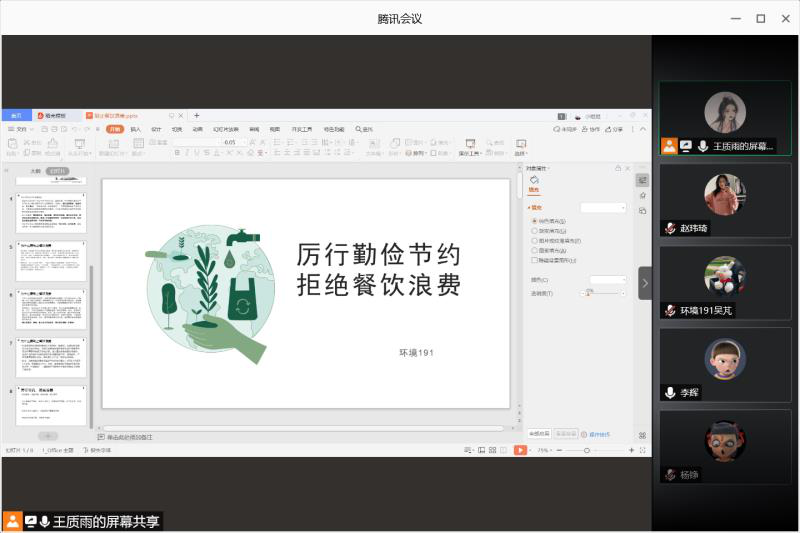 环境171班主题班会中,同学们对于餐饮浪费的现象从感悟、力所能及之事等多方面,结合环境工程所学专业知识,展开了热烈讨论,在今年的新冠肺炎疫情影响下,粮食安全与保障不可不重视,餐饮浪费现象不可不制止。