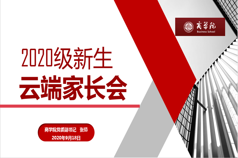 9月18日晚,商学院举办了2020级新生云端家长会。商学院副院长何玉润教授、党委副书记张倩、辅导员老师们以及2020级220余名新生家长出席了见面会。何玉润从学院发展、学生培养、师资优势、教学特色、学习要求等方面,向家长进行了详细介绍。张倩从学校与学院、管理与服务、就业与发展、成长与成才这四个维度展开讲解,介绍了人才培养目标、千人大考、四六级奖励政策、商梦花开学习辅导团体等组织和开展情况。工商类201班李佳函和注会202班睦佳杰两位新生代表表示,要在大学中脚踏实地抓学习,砥砺前行共成长 ,共同谱写人生新华章。