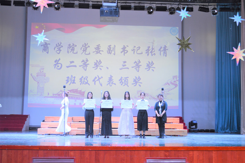 经过评委的认真评审,工商202班、工商203班获得一等奖。此次比赛评出了最佳舞台奖、最佳风采奖、最佳创意奖、最佳编排奖、最佳指挥奖、最佳人气奖。校合唱团指导老师孙凯进行了点评,肯定了各班老师和同学们的努力和精细的准备。与会领导和老师分别为获奖的班级代表进行了颁奖。