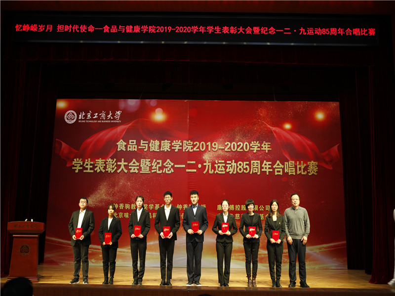 为纪念“一二·九”运动85周年,引导激励学生继承和弘扬爱国主义精神,深入学习贯彻习近平新时代中国特色社会主义思想,树立责任意识,争做先进优秀,增强集体凝聚力和荣誉感,12月17日,食品与健康学院在阜成路校区举办了“忆峥嵘岁月 担时代使命”2019—2020学年学生表彰大会暨纪念“一二·九”运动85周年合唱比赛。