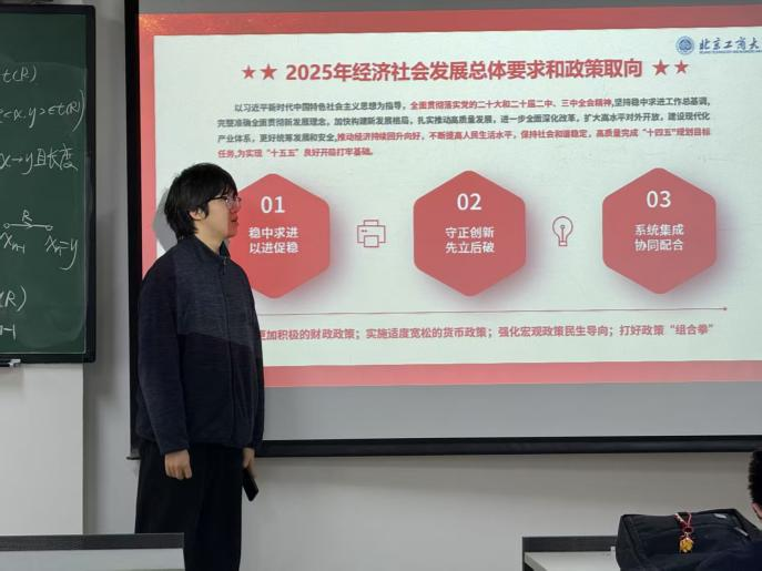 在两会精神学习篇,班主任带领各班学生,结合政府工作报告中的“制造强国”“教育强国”“人工智能+”等关键词,向同学们解读了2025年全国两会精神。经济学院、商学院与数字书院各班聚焦两会提出的高质量发展与新质生产力,引导学生关注国家经济布局,深入思考未来发展方向。轻工科学与工程学院各班围绕“制造强国”战略,鼓励同学们主动探究如何以专业能力服务国家战略需求。法学院、食品与健康学院、计算机与人工智能学院各班分别围绕法治建设、健康中国与“人工智能+”等主题,通过分组讨论和专题研讨相结合,引导学生将个人未来发展与国家需求紧密结合。数学与统计学院各班重点学习了数字经济和教育数字化,提高了学生对数字化转型重要性的认识。语言与传播学院各班深入探讨了“人工智能+语言服务”的创新路径和未来发展趋势。设计与艺术学院围绕乡村振兴与绿色发展主题,引导学生从两会政策中把握时代方向,增强服务首都四个中心建设的主动性与责任感。