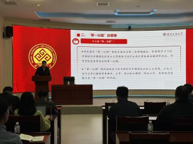 宣讲会上,党政办公室副主任王明策、法律事务办主任马擎宇,实验室管理处处长康志勇分别就《中共北京工商大学委员会常务委员会落实“第一议题”制度实施办法》《北京工商大学 落实“三重一大”决策制度的实施办法》及相关解释,《北京工商大学规章制度管理办法》《北京工商大学大型仪器设备开放共享服务绩效激励办法 (试行)》《北京工商大学实验耗材管理办法》等学校规章制度的制定背景、主要内容、重点条款、贯彻实施要求等进行了宣讲和说明。