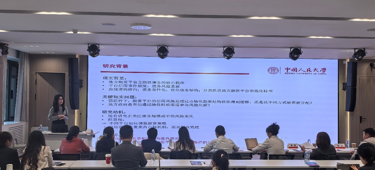 中国人民大学经济学院鲁书伶博士报告了论文“名单制监管、平台融资策略分化与信用风险”。论文以融资平台名单制监管为准自然实验,利用城投债二级市场数据,识别分类监管对平台信用风险的影响。研究发现,名单制监管显著降低了高信贷依赖平台的信用利差。机制分析表明,监管通过改变融资路径引致平台分化:高质量平台加快市场化融资转型,低质量平台更多依赖财政与土地支持。论文从分化视角揭示了监管政策信用风险效应的内在机制,丰富了地方政府债务治理与分类监管的相关研究。