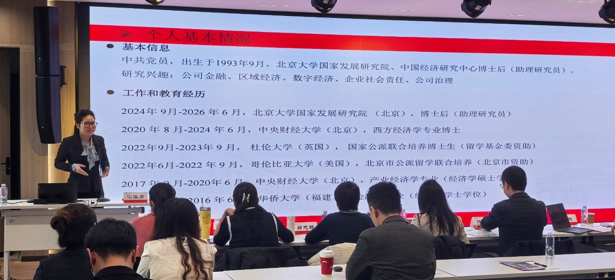 中央财经大学经济学院博士、北京大学国家发展研究院博士后余玲报告了论文“Digitalized Commercial Reform and Corporate Investment Efficiency”。文章采用叠加差异研究设计,发现数字化商业改革提高了企业投资效率。提高政府管理效率、提高商业信息的透明度以及加强对商业活动的监管是推动这一改进的动力。非国有企业、市场细分程度较高地区的企业和商业不确定性较大的企业对投资效率的正向影响更为显著。进一步分析表明,改革既抑制了企业投资不足,又抑制了企业投资过度。