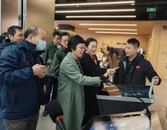 参观访问环节,教育板块团队负责人戴军对马克思主义学院师生一行表示热烈欢迎,接待并陪同参观了京东方高新技术展厅。在工作人员的引导讲解下,师生首先系统了解了京东方在半导体显示、物联网创新、数字教育、智慧医工等领域的产业布局与发展规划,全链条创新图景从技术突破到生态构建渐次呈现。随后,师生步入各类创新产品展示区,超高分辨率显示屏的细腻画质、可折叠屏的灵活形态、透明显示技术的奇幻效果等,集中呈现了半导体显示技术对生活方式的深度革新。在实景互动区域,师生通过亲身体验,直观感受智慧显示技术在工业互联网、AI应用、智慧教室、智慧办公、智慧医疗及智慧出行等场景的创新应用,也对新时代我国科技事业取得的历史性成就有了更具象的理解。参观尾声,师生在展厅内的专利墙前驻足感叹,表达了对京东方持续且强劲的研发投入和创新水平的深表赞赏,也更加深刻领悟到“创新是引领发展的第一动力”的真理力量。