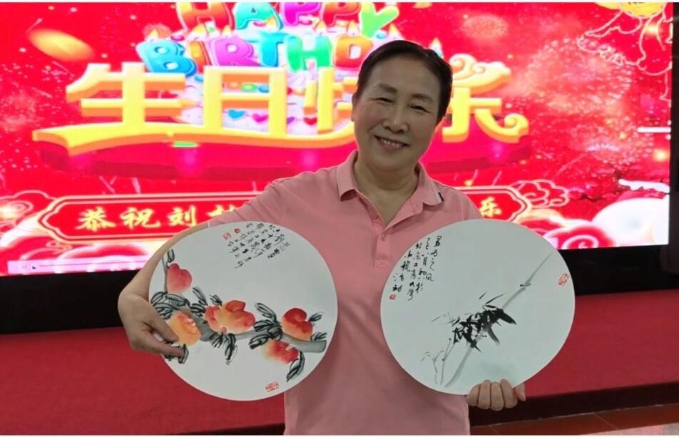 活动现场特别设置的祝寿环节温馨感人。当得知刘桂萍老师正值69岁寿辰时,现场在《生日快乐》的深情旋律中,响起经久不息的掌声。离退休工作处提前委托霞辉书画社为刘桂萍老师专门创作书画作品作为生日礼物表达真挚祝福。这份突如其来的温暖,让寿星老师感动不已,将现场气氛推向高潮。