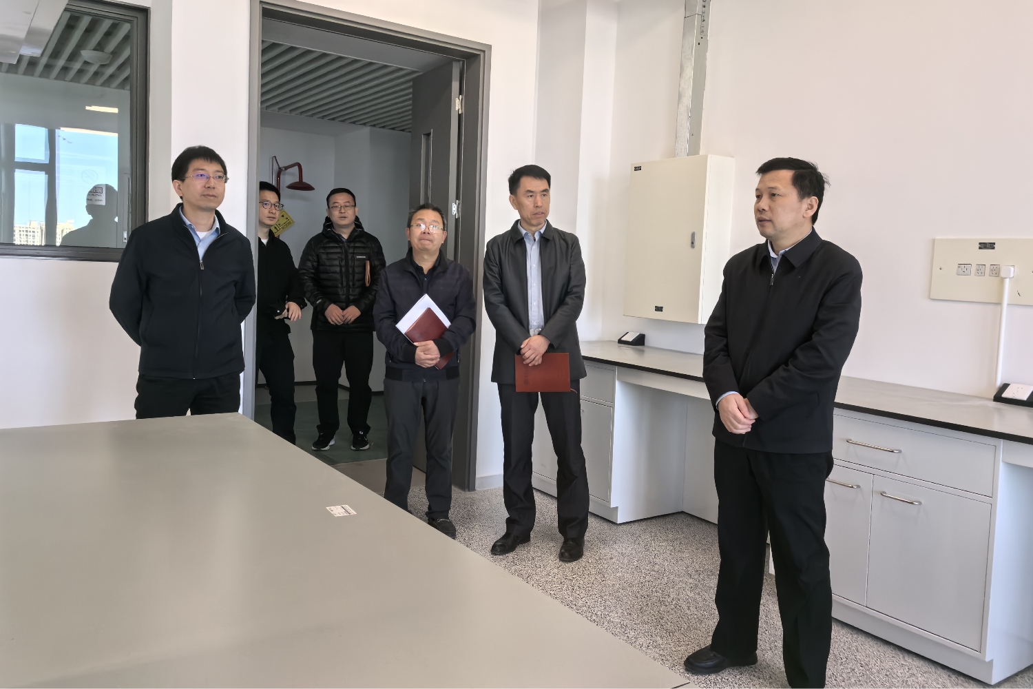 寇红江一行实地考察了食品与健康学院、轻工科学与工程学院、大型仪器设备共享中心及轻工食品类基础课实验教学中心,认真听取了各单位关于建设进展的情况汇报,详细查看了实验室、教室及办公室的建设现状,具体了解了实验台柜、通风设施等配套设施设备的安装进度和技术标准。