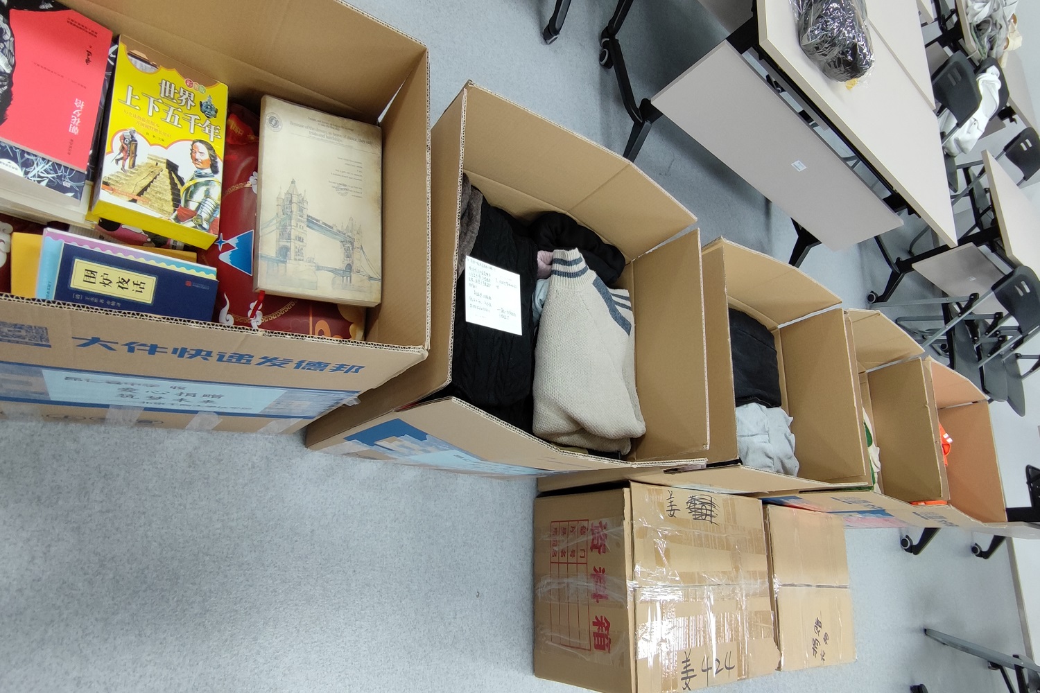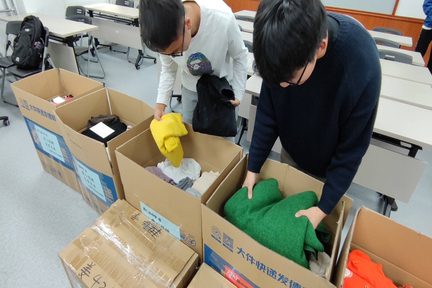 学院对所捐衣物进行了仔细整理和挑选,并进行打包、邮寄,共邮寄11箱衣物,重量达170KG。学院在第一时间与昂仁中学取得联系,并会将衣物接收情况以图片、文字等形式反馈给师生们。