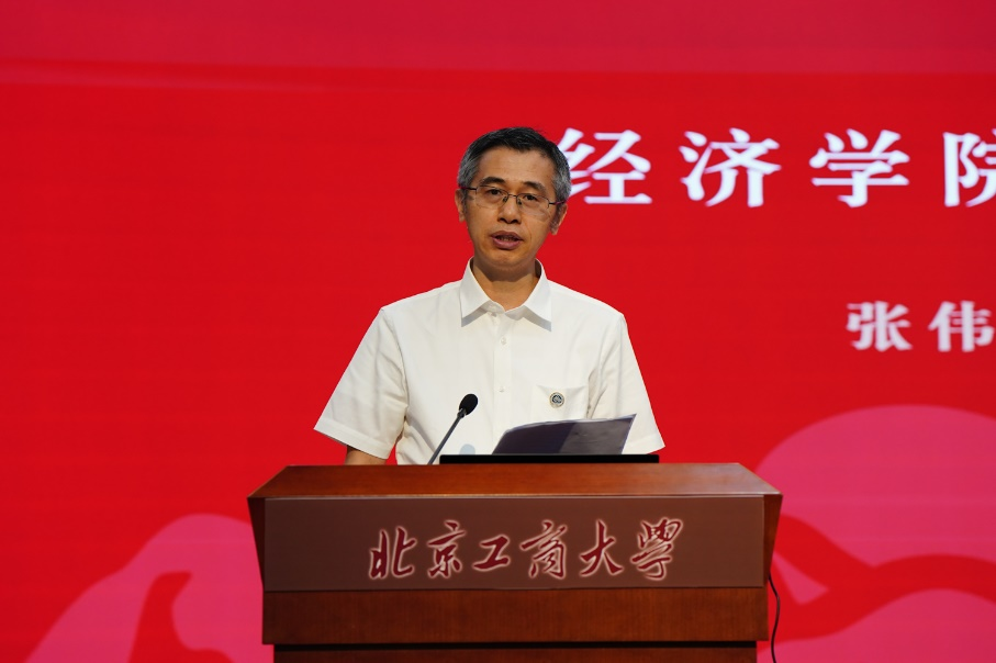 基金成立仪式由詹新宇教授主持。詹新宇介绍了北京工商大学金融学科明德教育基金名称的由来与设立基金的整体设想。“明德”二字取自于《大学》之首句“大学之道,在明明德”,既是表明基金的设立宗旨为“以明德立人、以德育才”,也是向以北京工商大学金融学科带头人杨德勇教授为代表的北工商金融学人致敬。该基金将对金融学科未来的教学、科研和学生培养提供全方位的支持。詹院长回顾了北工商金融学科自1993年创建以来的发展历程和所取得的系列成就,尤其是对金融学科带头人杨德勇教授从教四十年来的辛勤耕耘与丰硕成果表达敬意,并寄语金融学科,希望未来能够赓续薪火,再谱华章。最后,詹院长宣布金融学科明德教育基金正式成立。