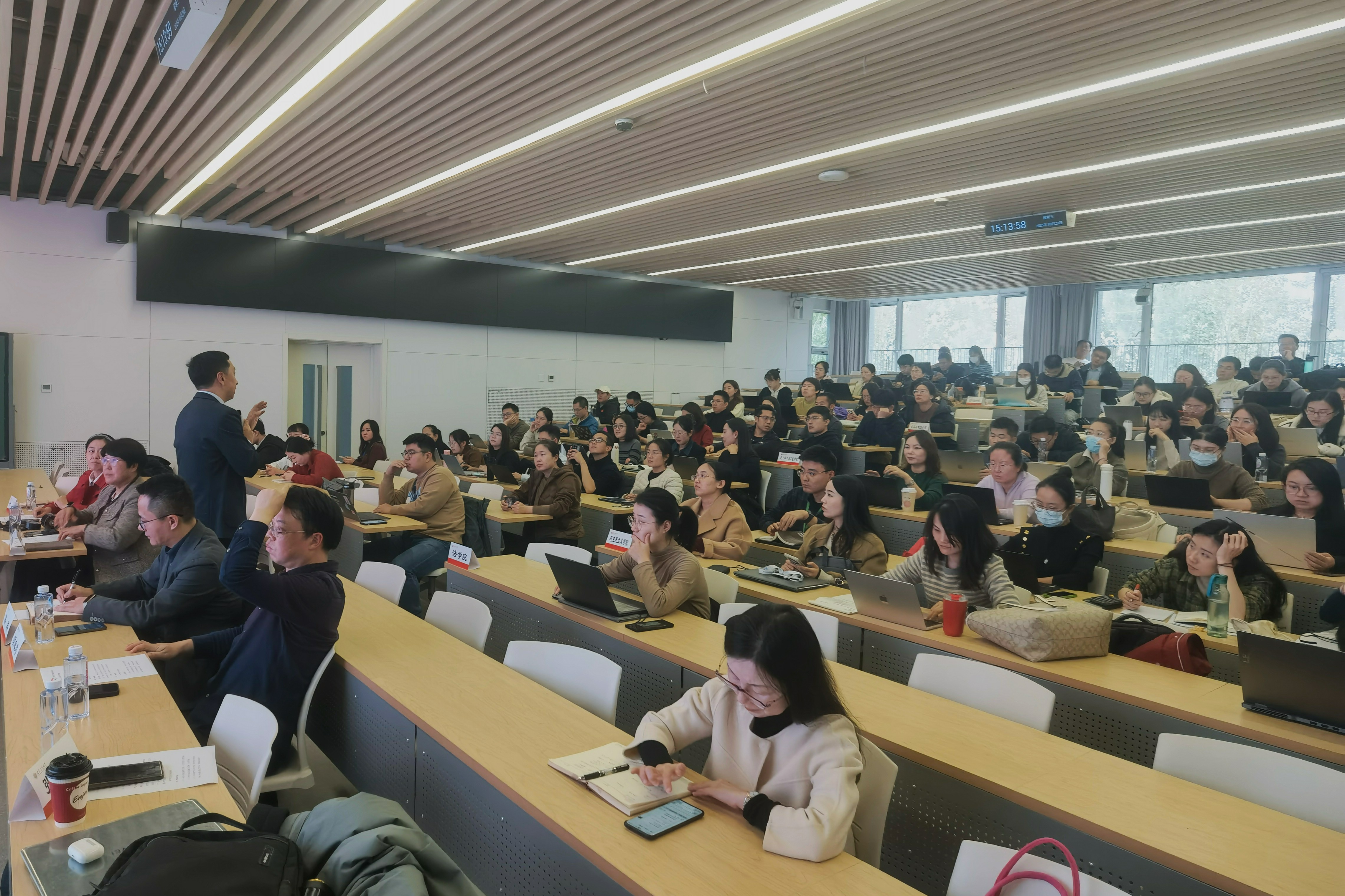 为全面贯彻落实党的二十大和二十届二中、三中、四中全会精神,深入学习贯彻全国教育大会精神和习近平总书记关于教育的重要论述,强化教育家精神引领,推进我校“本科教育教学大讨论”工作走深走实,提升教师教书育人能力,10月29日,学校在良乡主校区文二楼组织开展了本学期首次“名师大讲堂”活动。活动特邀四位校内外教学名师为青年教师进行示范课展示,近五年新进教师130余人线下参加,现场同步通过腾讯会议全程直播。活动由教务处副处长熊科主持。